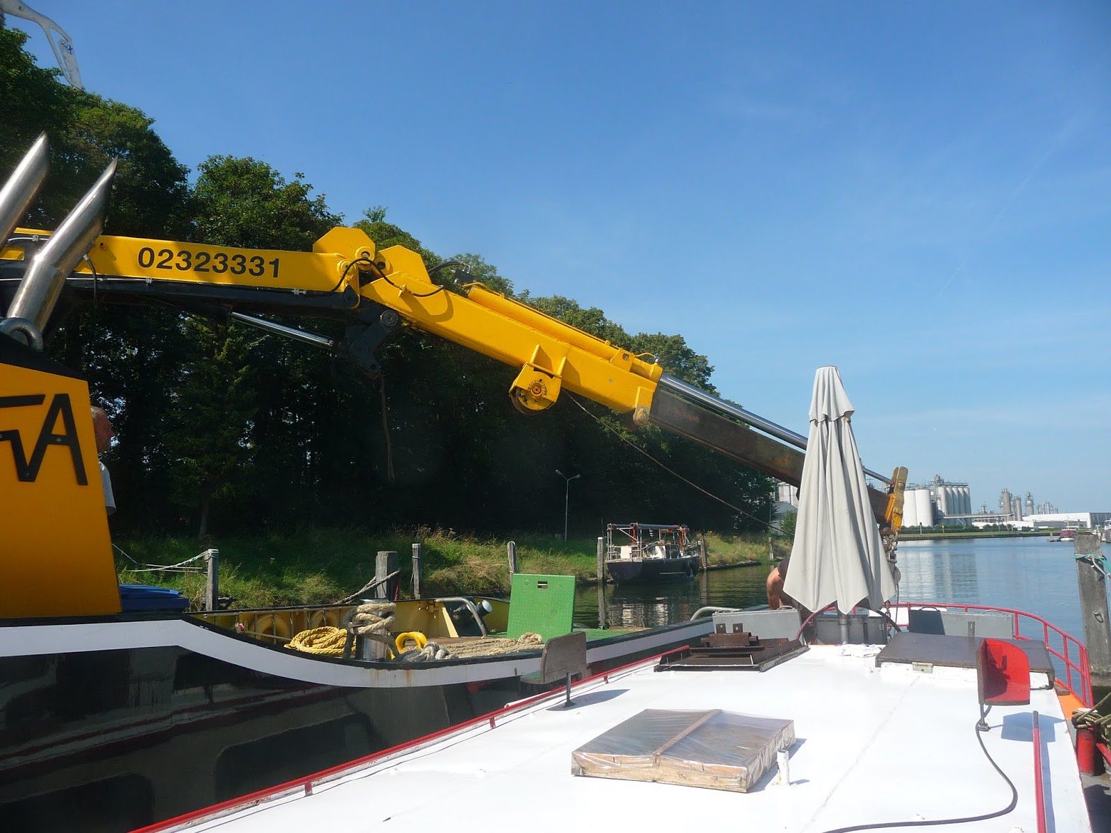 Thursday was the big engine exchange day for our Hennie H. I can honestly say it all went well, until the tow boat crew, whose crane we were using, lifted our old (and, to our horror, much heavier than we thought) engine off their deck at a steep angle and oil started pouring out of the head....